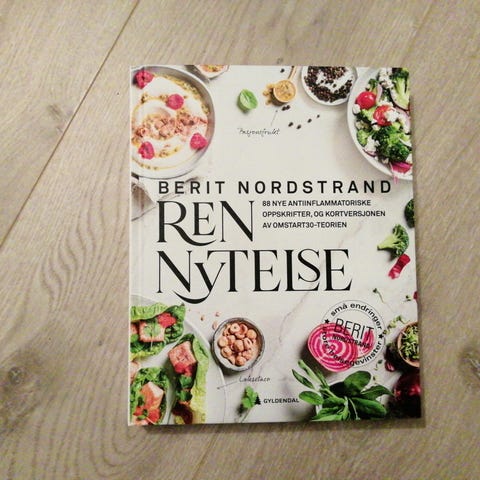 Berit Nordstrand Ren Nytelse kokebok med 88 nye antiflamatoriske oppskrifter, råd og forklaringer om omstart30-teorien. Inneholder oppskrifter med fokus på næringsrik og helsebringende mat.