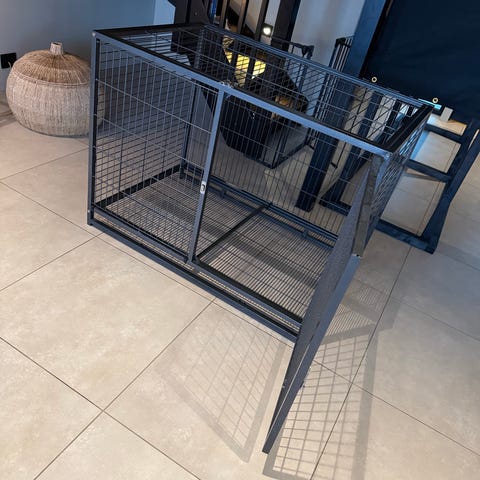 Metall bur med mål 216x65 cm. Bur med dør og låsemekanisme. Egnet for sikring av kjæledyr. Selges da det blev for stort , bare satt opp og tatt ned igjen har dessverre ikke boksen lenger men buret er veldig enkelt å sette opp. Må hentes .