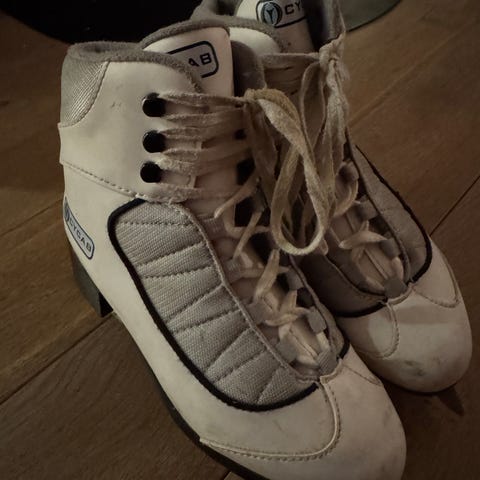 Nesten nye danseskøyter selges. De er stive i ankelen og er stødige og gode å ha på foten.