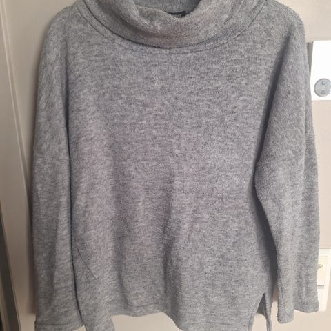 Bik Bok høyhalset genser i størrelse S. Genseren er grå og har en glidelås i halsen. Materialet gir god komfort og genseren passer for kvinner.