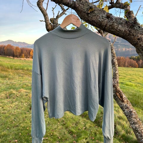 Ingen synlige hull eller skader på selve genser, men øverst på glidelås stikker fest litt ut som vist på bilde 5