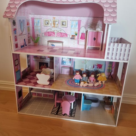 Selger et fint dukkehus med forskjellig tilbehør. Huset åpnes i midten og gir god lekeplass med flere rom/soner. Hentes på Steinkjer