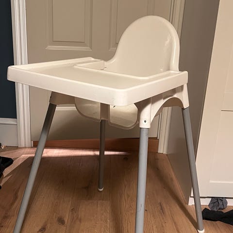 Antilop fra IKEA, høy barnestol med brett, hvit