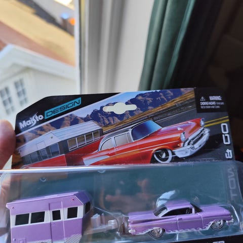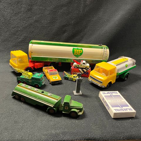Samling av fire modellbiler i metall