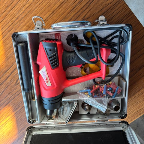 Home work 231C muttertrekker med flere forskjellige nøkkelstørrelser og et robust bæreveske. Verktøyet er luftdrevet og egnet for ulike mekaniske oppgaver som krever høy momentstyrke.
