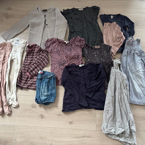 Kjoler, joggebukser, t-skjorter og en langermet trøye.