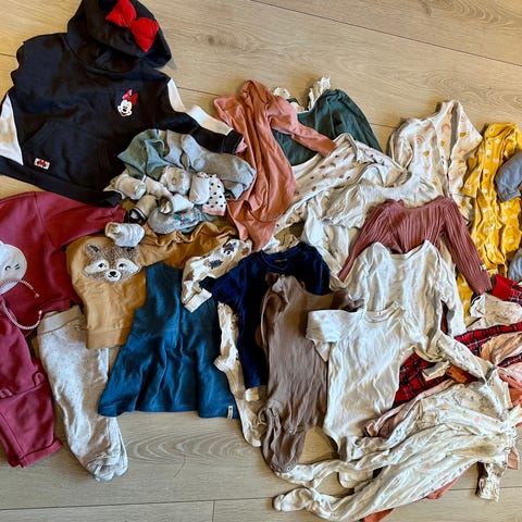 Newbie barnekjole og damekjole i fint blomstermønster, laget av bomull. Kjolen er i størrelse 74 og i størrelse M. Brukt et par ganger. Veldig fine kjoler.