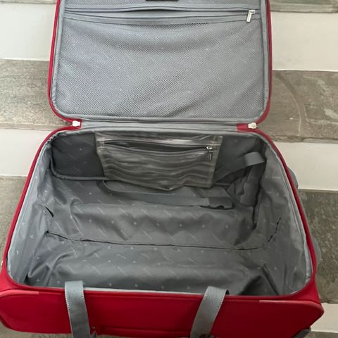 Pentbrukt, se bilder for mål og detaljer. Legg merke til at den ene metall låsen er erstattet med en annen lås som fungerer fortsatt bra. TSA lås. 4 hjul som roller bra. Hel og fin.