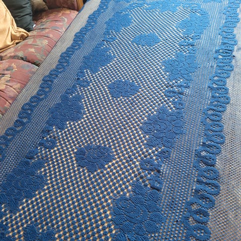 Voksduk med pirattema i svart og hvitt med mønster av stjerner og piratsymboler som sverd, hodeskalle og hatt. Kjøpt på Stoff og Stil (nå Selfmade) Ubrukt!