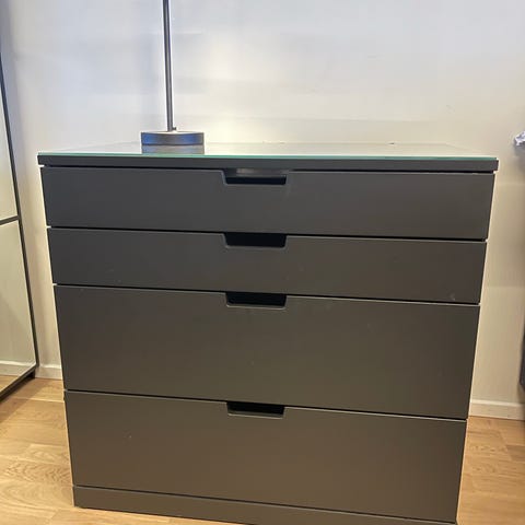 Brukte kommoder som kan settes oppå eller ved siden av hverandre. Funksjonable. Hver enkelt er 45 cm høye og kan altså bli 90 cm.