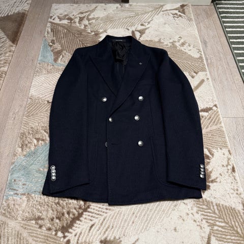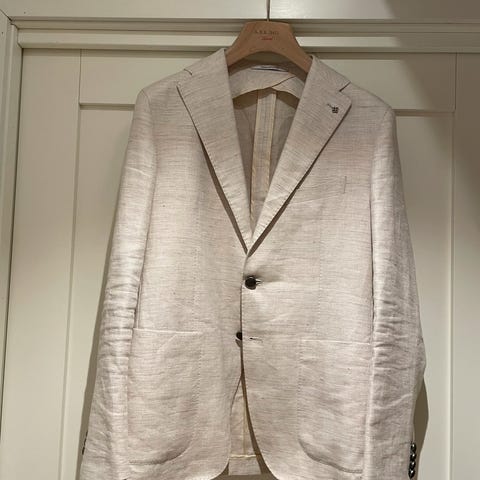 Nydelig sport coat fra italienske Tagliatore i ull og silke. Brukt 3 ganger, som ny. Ukonstruert, uforet, florlett og med forseggjorte detaljer.