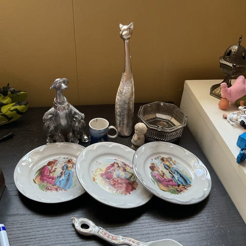Sparebøsse katt i en kurv av metall, forsølvet.