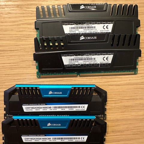 Corsair Vengeance DDR3 RAM 2 x 4GB moduler med kjøleribber. Passer for datamaskiner som støtter DDR3-minne.