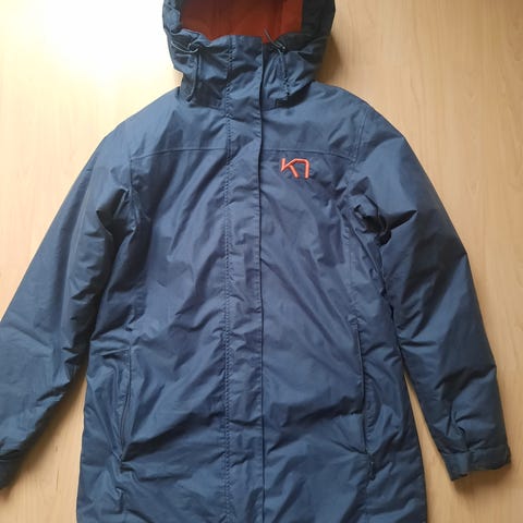 Kari Traa Vinterjakke i størrelse M for kvinner. Jakken er grå og har litt for. Vannavstøtende og vindtett.