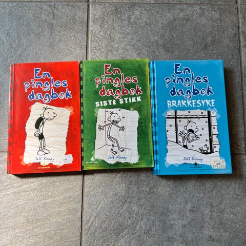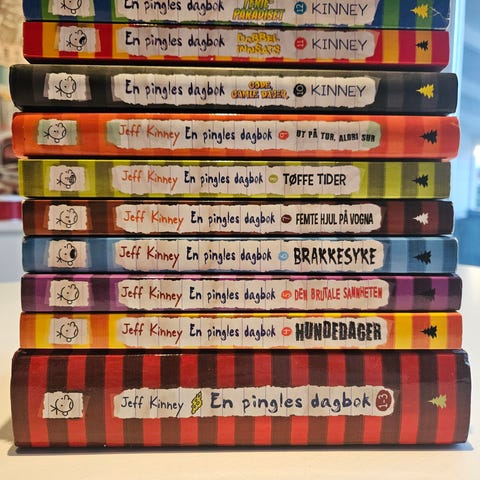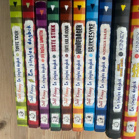 En Pingles Dagbok bøker. Bok 1, 2, 3, 4, 5 og 11. Nr 2 er innbundet, resten pocket.