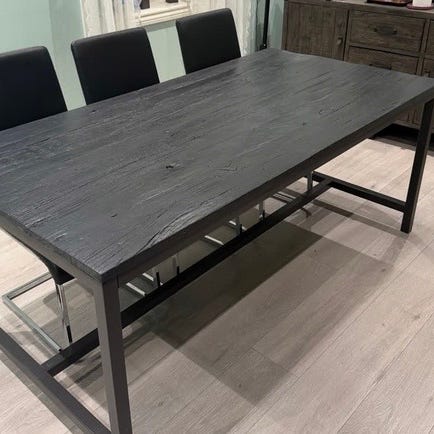 Selger dette spisebordet(uten stoler), godt brukt. Selges derfor billig unna. Kan slipes og males over. Nypris var 5499kr på Bohus. Hatt i tre år. 90x180