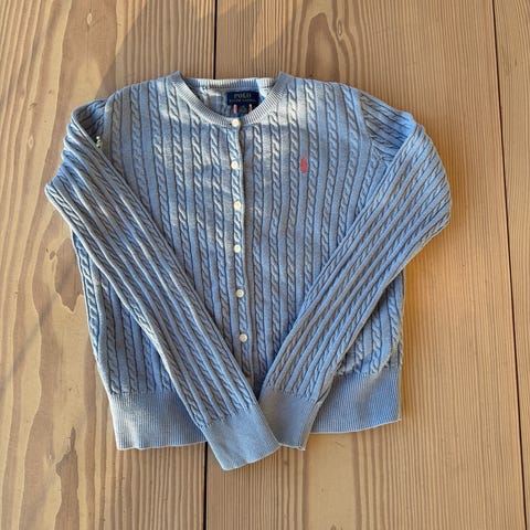 Polo Ralph Lauren fleece genser for gutt i størrelse 140. Genseren er blå og laget av fleece materiale, egnet for å holde varmen ved kjølig vær.