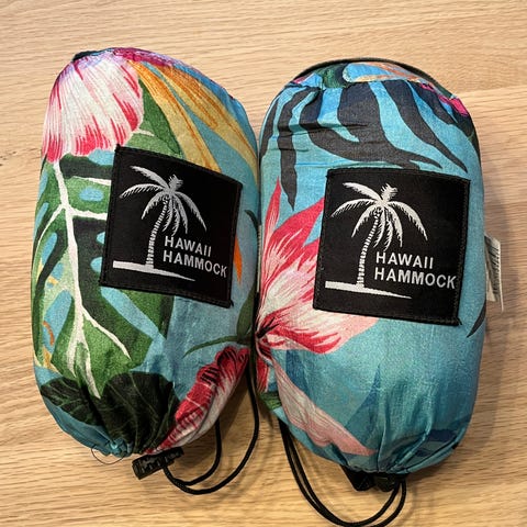 Pent brukt hengekøye med plass til to. Alt følger med. Fargen er blå og gul.