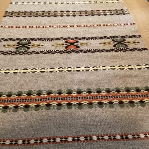 Fjell flora brodert linduk med hekla kant