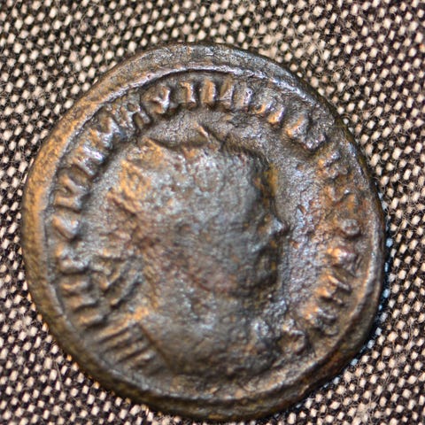 Dette er en meget pen og sentrert liten bronsemynt av moren til Constantine I. Hun er sankt i den katolske kirken. Napoeloen satt fengslet på øya St. Helena. Mynten er penere i hånden enn på bilde. Den veier 2,99g og diameteren er 19. Noen samler på de romerske damene og noen samler hele familiedynasti. Constantindynastiet er et morsomt og billig samlefelt.