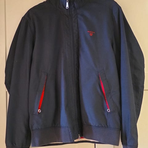Blå Gant bomber jakke i strl. L selges. Ser litt krøllete ut da den har lugget i boden, men retter seg fort ut. Må hentes.