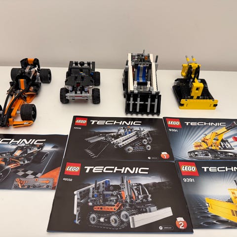 Jeg selger LEGO Technic-samlingen min. Modellene er kun bygget én gang, og har ellers stått på hylle. Alle settene selges ferdigbygde, slik at du tydelig kan se at alle delene er med.