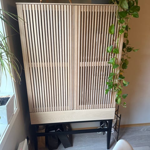 Brixton skap i hvitpigmentert oljet eikefiner, fra Bohus selges. Skapet koster 10999kr hos Bohus da det var nytt i 2022. Det er en vannskade etter blomsterpotte på toppen av skapet. Se bildet.