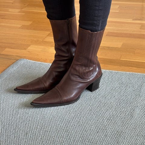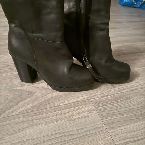 Grå Roots støvler i skinn størrelse 37 selges. Støvlene har høy hæl og glidelås på innsiden for enkel på- og avkledning. Datteren min har vokst fra de etter en gangs bruk.