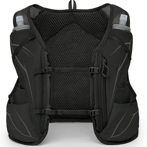 Osprey Duro 1 løpevest i størrelse L for unisex. Vesten er designet for løping og har flere lommer og festeanordninger for utstyr. Inkluderer to myke flasker på 500 ml hver for væskebehov under trening eller løpeøkter.