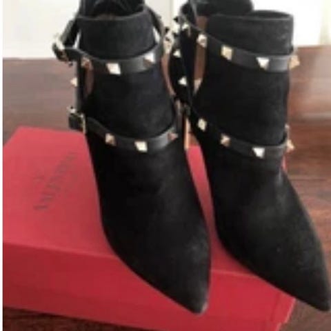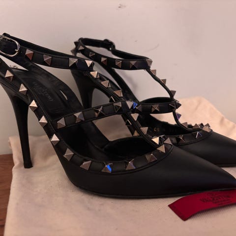 Selger veldig pent brukte Valentino rockstuds i kitten Heel. Er helt sorte. Ingen skader eller synlig slitasje. Er så kule, men bruker de dessverre aldri. Er str. 39,5 da de er en anelse små. Blir som en 39. Kommer med original eske