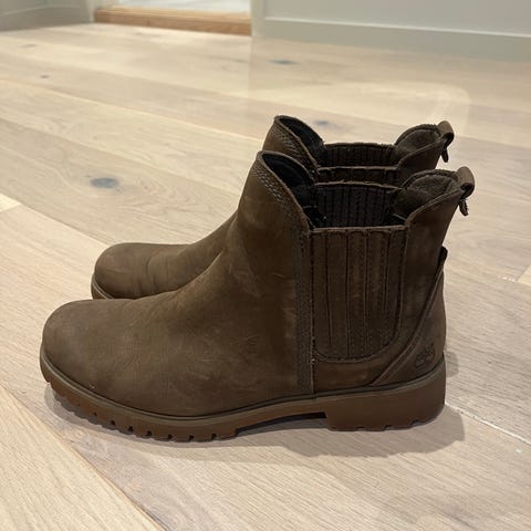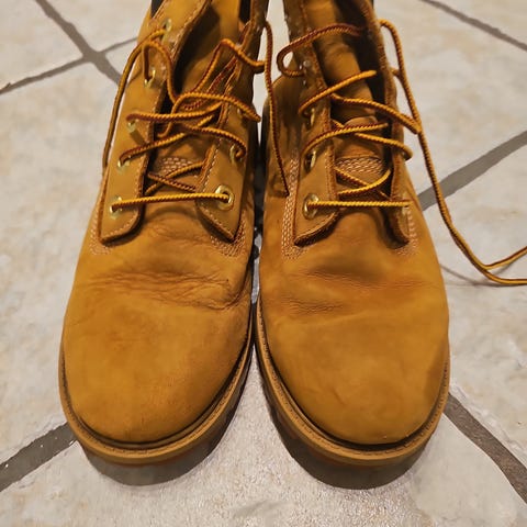 Timberland boots i størrelse 40. Skoene har en gulbrun farge og er laget av robust materiale med solide såler for godt grep.