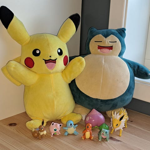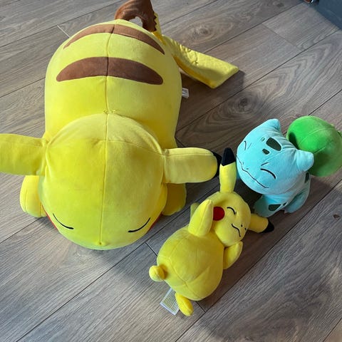 Pokémon kosedyr som inkluderer Pikachu, Jigglypuff, Pichu og Oshawott. Laget i mykt materiale, egnet for barn.