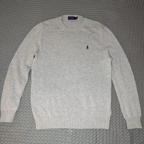 Ralph Lauren Polo genser i beige farge, laget av merinoull. Størrelse medium for menn. Nypris 2790. Selges for 1400.