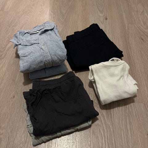 Både uteklær, (kjeledress, vindjakker, forete jakker, skibukser) og vanlige klær og sko i str 36 om ønskelige. Hentes på skatval