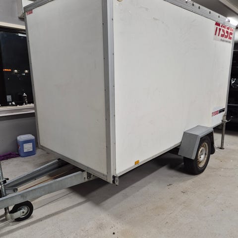 Henger er i meget bra stand. Solide surrefester inne og med LED lykter.