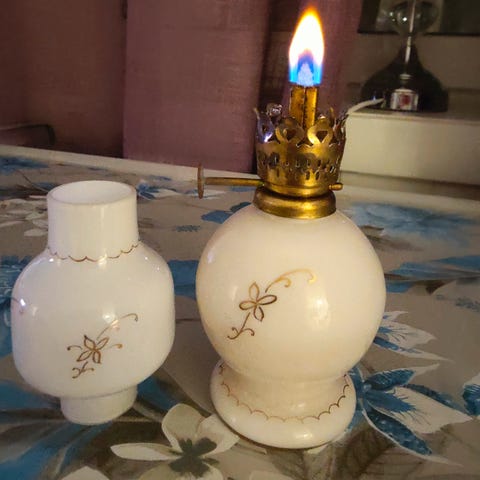 Dekorativ lampe av drivved og stein.