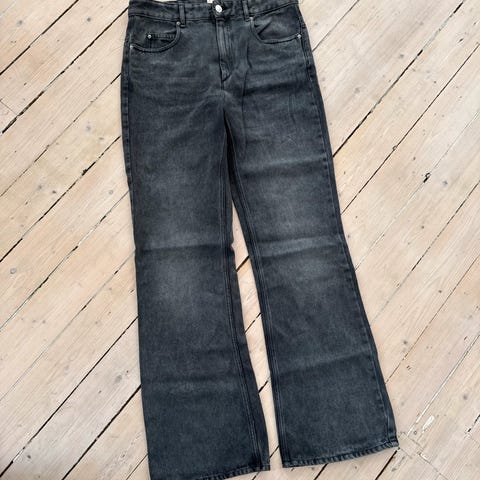 Grå steinvasket jeans fra Isabel Marant. Str.34, men passer en str.36. Høy passform.