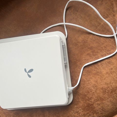 Denne fungerer som modem/antenne. For trådløst nett inne må den kobles til en separat ruter eller WiFi-aksesspunkt.