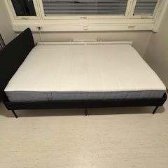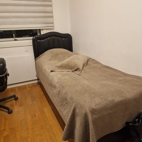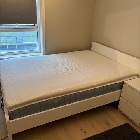 Hvit metal single seng inklusiv madrasser og overmadrasser