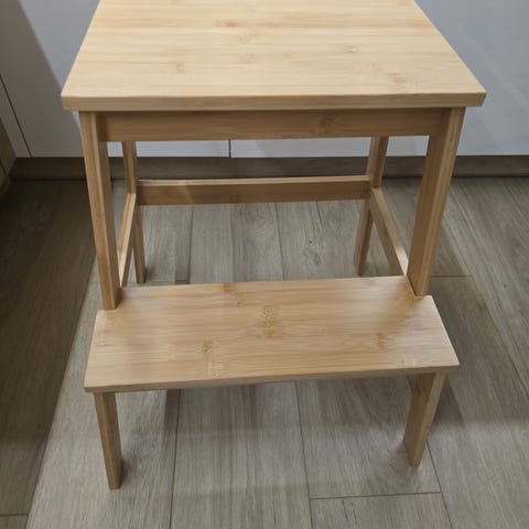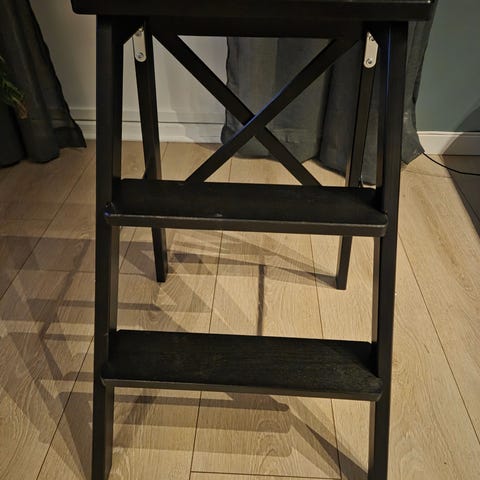 Praktisk trappestige fra IKEA, nesten ubrukt og som ny. Men en liten prikk i malingen på øverste trinn.