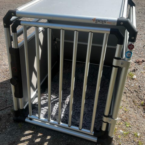 Selger et 4Pets Proline Eagle Pro 3 bur til hund. Størrelse Large. Vekt 20,5 kg. Solid bur som er designet for sikker transport og bruk i bil. Ingen skader på buret. Mangler nøkkel til å løse dør, men dette har ikke hatt betydning for vår bruk.