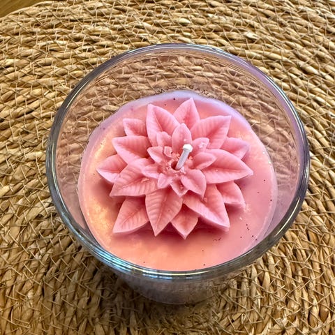 Søte håndlaget lys av gjenbrukt stearin. Krukkene lysene kommer i er også gjenbrukt.