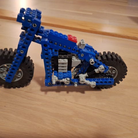 Jeg selger LEGO Technic-samlingen min. Modellene er kun bygget én gang, og har ellers stått på hylle. Alle settene selges ferdigbygde, slik at du tydelig kan se at alle delene er med. Denne moddelen mangler desverre tre kasser som skal være bakpå motorsykkelen