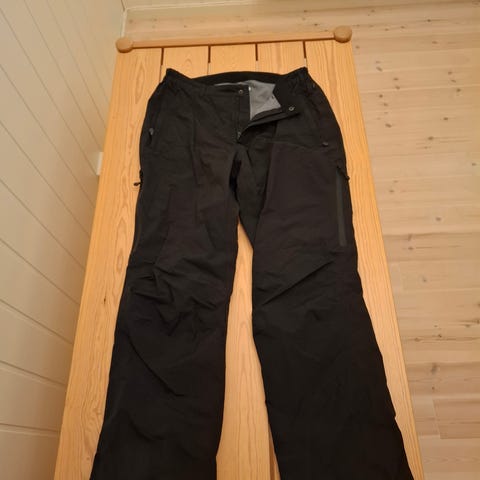 Borrelåslukking i midjen. Sidelommer og en ved kneet. Glidelås og borrelås nederst i sidesømmene.