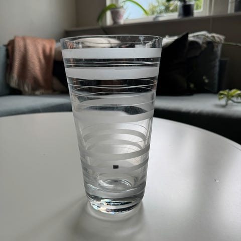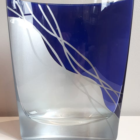 Steninge slott glasskål i blått glass med dekorative striper. Egnet som dekorativ gjenstand eller til oppbevaring av små gjenstander.