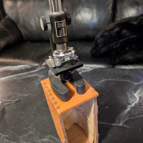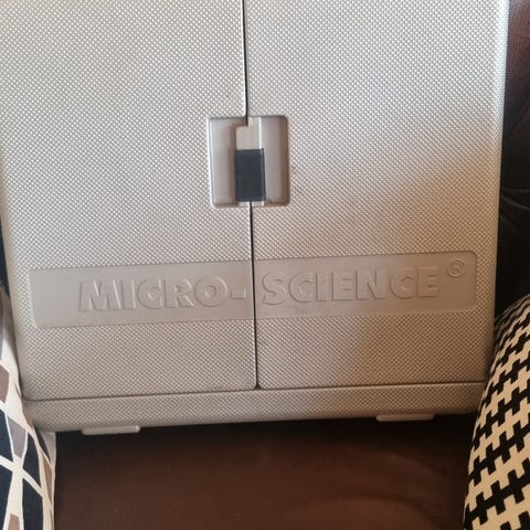 Selger et komplett mikroskop-sett i koffert. Perfekt for barn, unge eller nybegynnere som er nysgjerrige på naturvitenskap og utforsking.