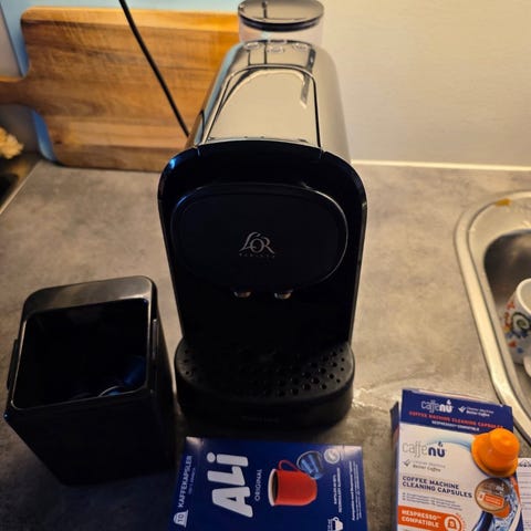 Nespresso D50 kapselkaffemaskin i svart farge. Kompakt design med avtakbar vanntank. Egnet for bruk med Nespresso-kapsler.