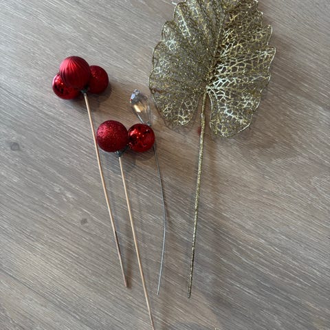 4 stk blomster til juletre. Klips bak. I en slags brunfarge.