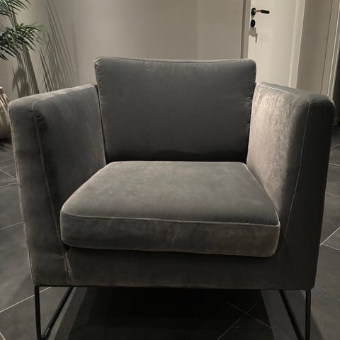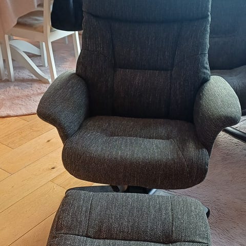 Lenestolen ble kjøpt fra Skeidar for noen måneder siden. Selges fordi den tar mye plass i lille leiligheten vår. Kostet 4999,-