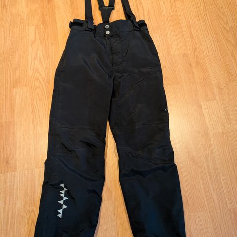 Vinterdress str 140. Pent brukt av ett barn, nypris ca kr 2500. Litt slitasje på knærne, men ingen hull. Ser hel og pen ut. Hempa til å henge den på knagg inni dressen er røket, men kan fikses med noen sting. Nyvasket med parfymefritt vaskemiddel, ingen lukt, vært oppbevart tørt. Tror det er mulig å legge ned beina, ikke vært gjort. Stramming i livet og strikk og gummihemper på beina.